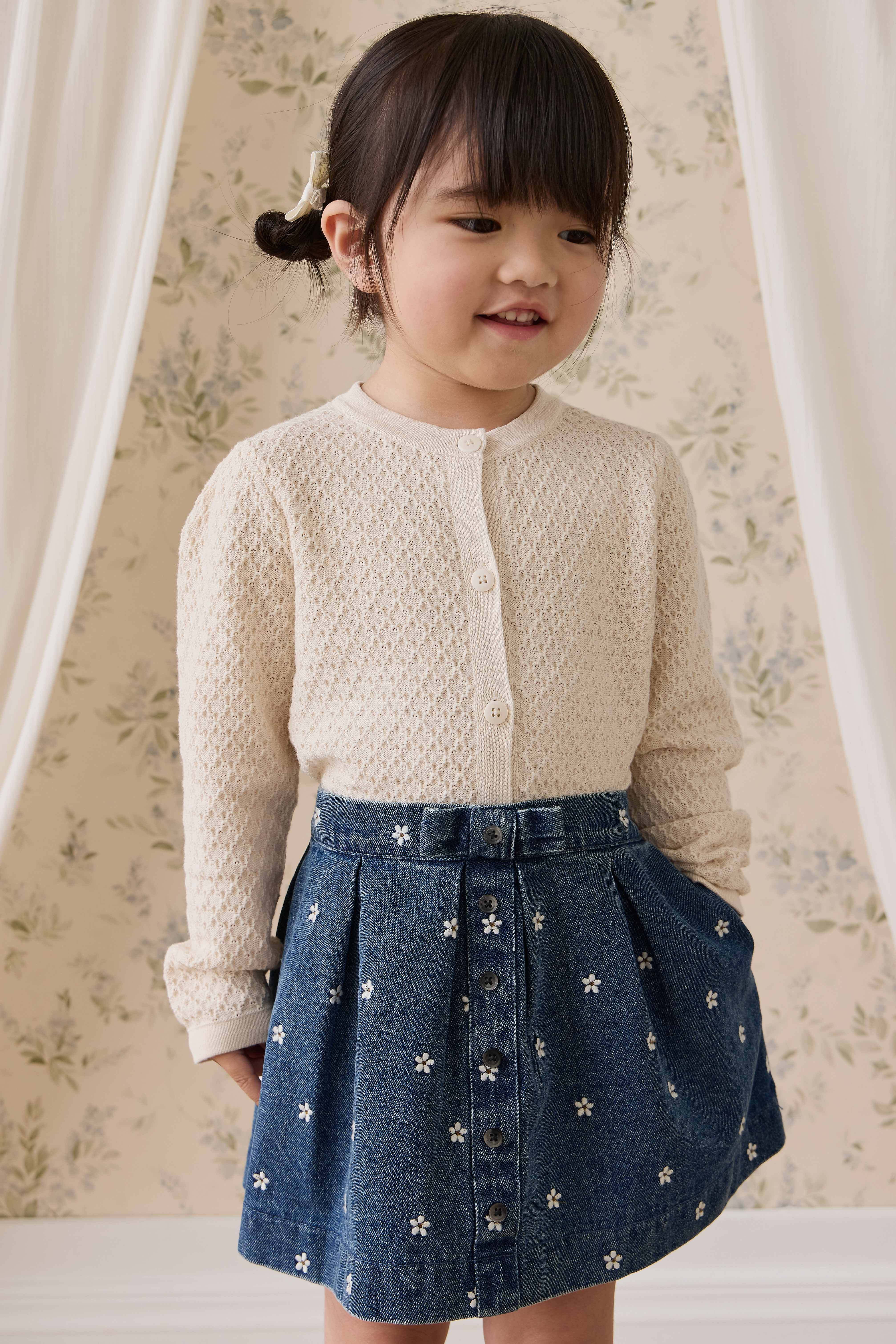 A dreamy piece for your little one’s wardrobe, the Etta Skirt in Josie Floral Denim combines timeless denim charm with delicate floral embroidery. Featuring an A-line silhouette and pleated detailing, this skirt is perfect for pairing with your favourite tops for an effortlessly chic look.