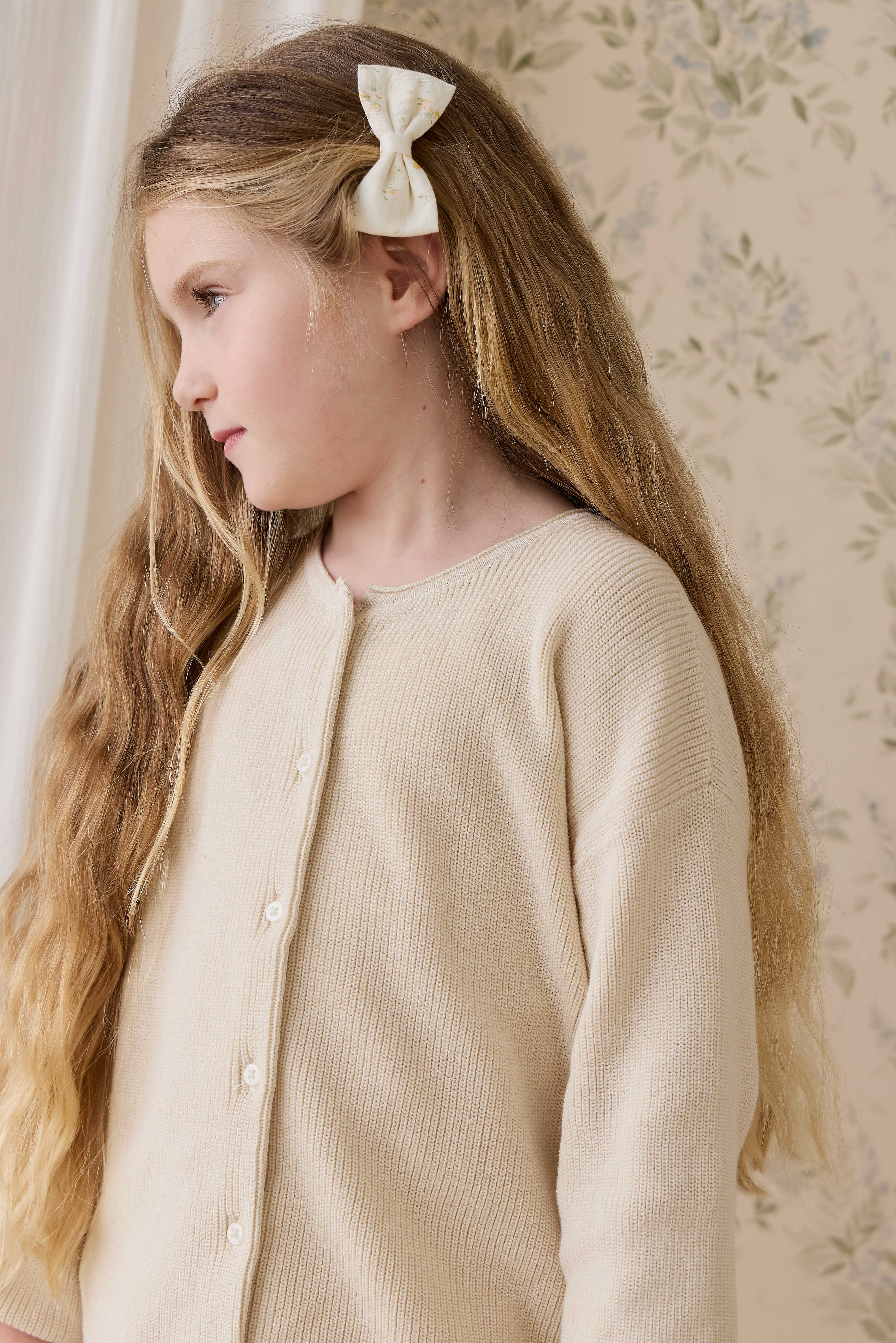 A softly refined layering piece designed for comfort and warmth, the Sally Cardigan in Vanilla is a timeless staple for little wardrobes. Featuring a classic round neckline, long sleeves and a delicate button‑through front, this cardigan offers an effortless, everyday silhouette with a beautifully gentle finish.
